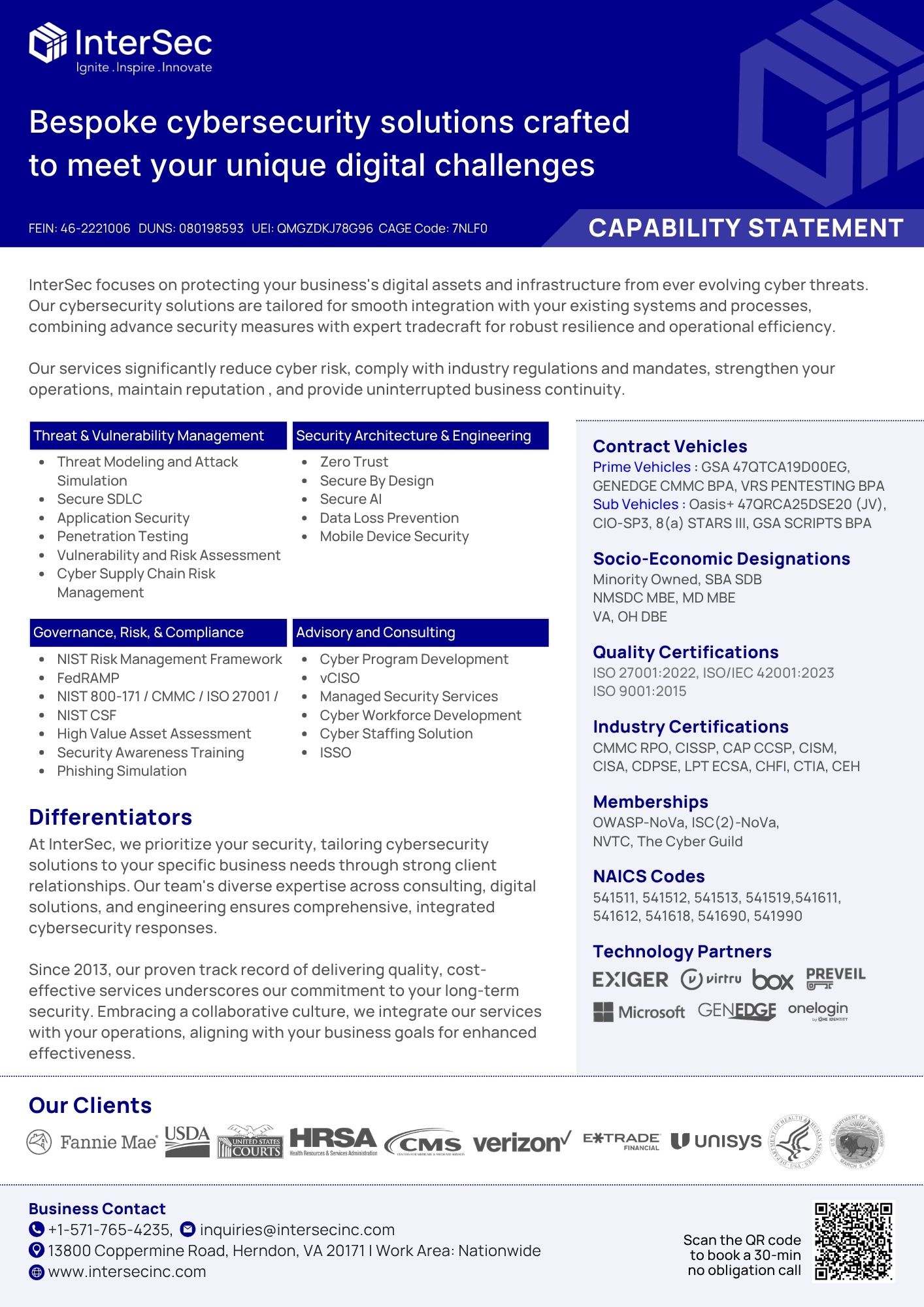 InterSec's NIST-based Compliance Service for DFARS takes the load off of you so that you can focus on your core business. We set you up to be DFARS compliant and provide and implement a plan to do so.